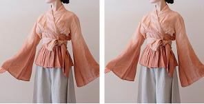あわせ衣はISUZUのコンセプトともなるデザインされた衣です。前身頃を交差して着ることで、着る人の体に沿うような形になります。リボンの結び方を変えたり、様々な着回しをして楽しむことができます。